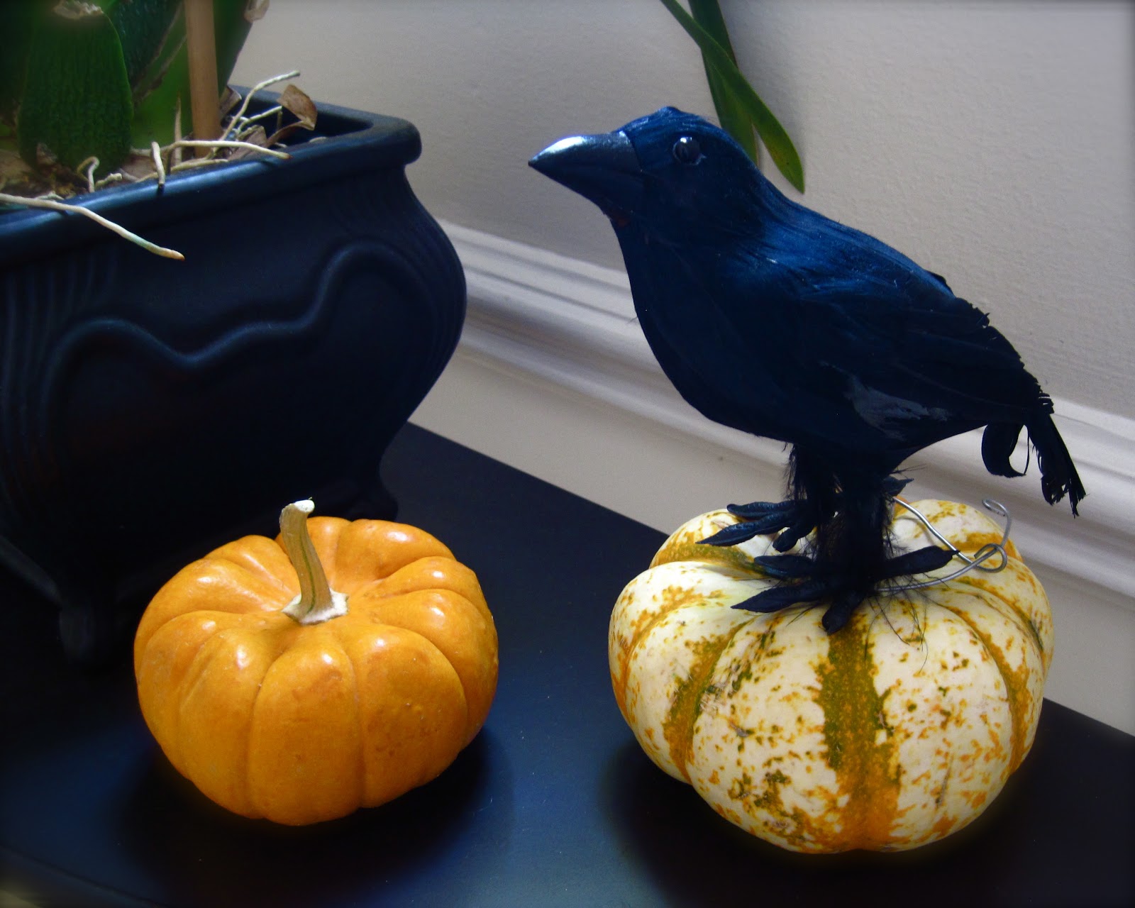 I love seasonal decorating and fall is no different. I am not so into the scary decorations but a little spookiness is OK and I love crows! My friend Evelyn had one on her porch and I have been on a hunt for one ever since. Even my neighbor got one last year!