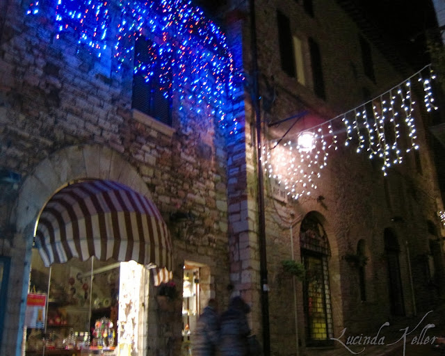 Above, you can see the Christmas lights over Piazza Commune, and below, the bell tower that hangs over the Piazza and Santa Maria Sopra Minerva.
